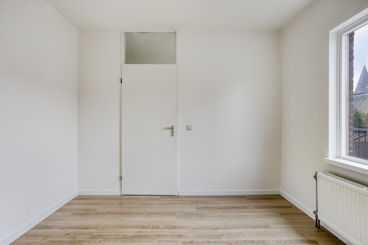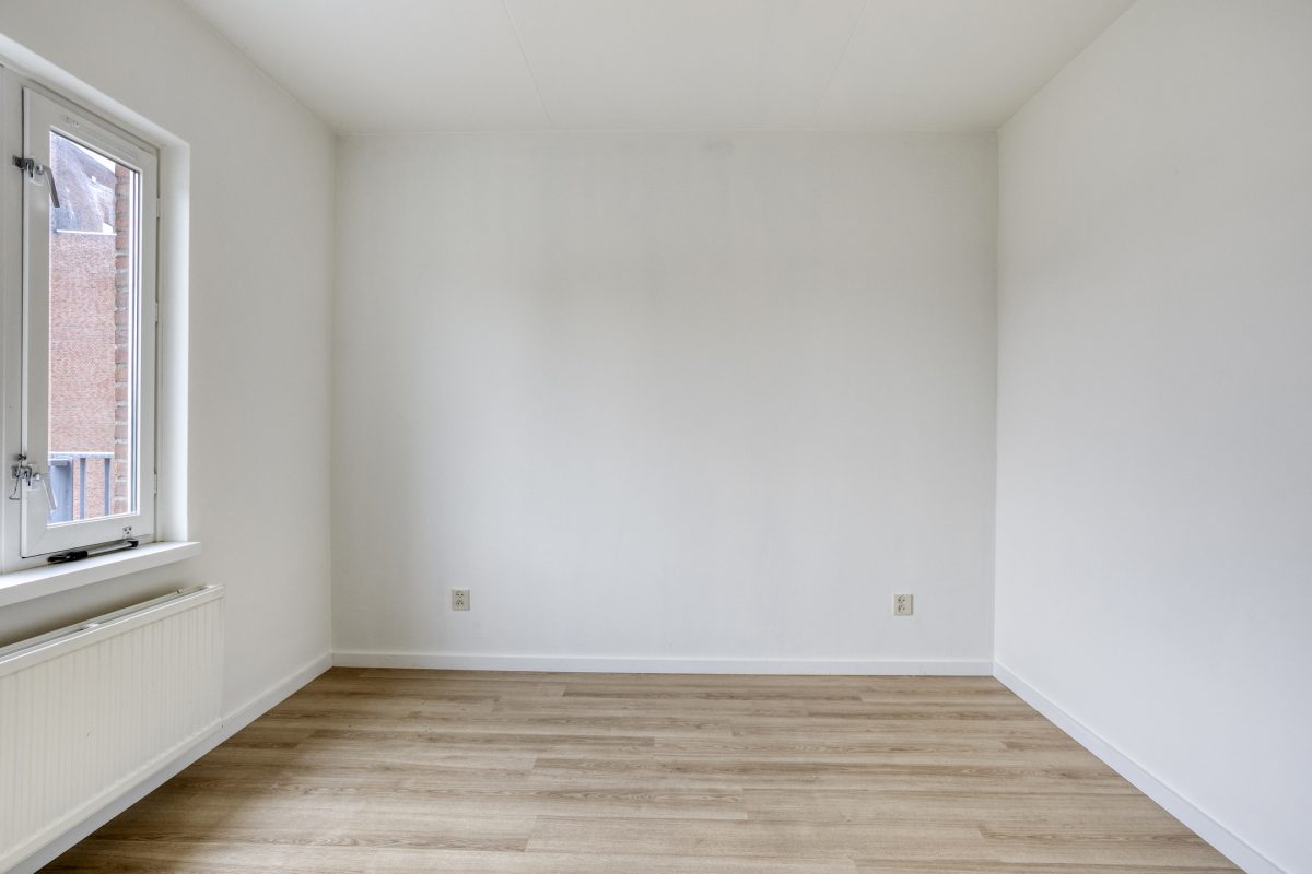 Aan de achterkant van de woning bevindt zich de ruime slaapkamer, eveneens voorzien van een moderne laminaatvloer.
