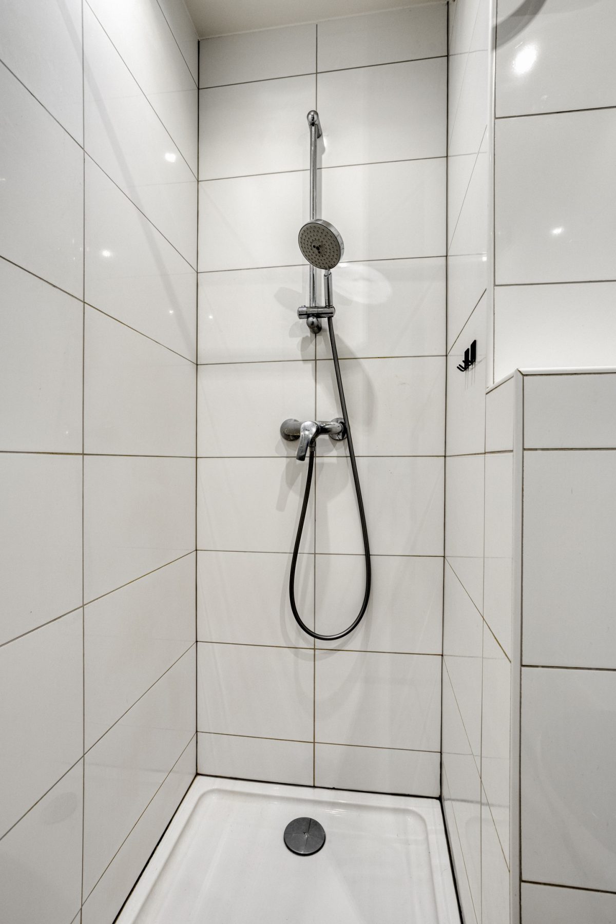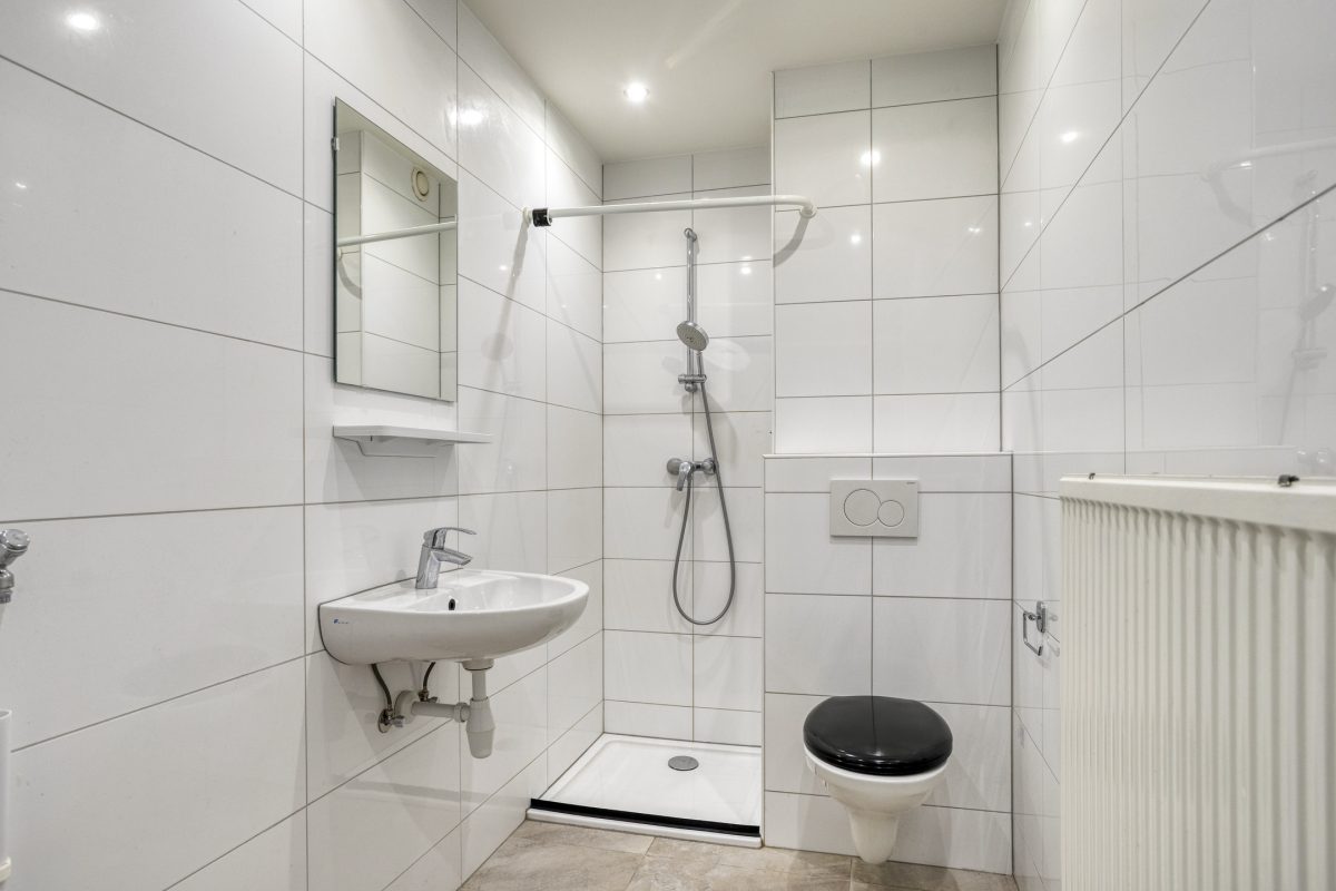 De moderne badkamer, recent vernieuwd, is uitgerust met een inloopdouche en een wastafel, tevens bevindt zich in de badkamer het moderne hangtoilet.